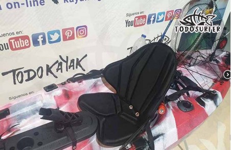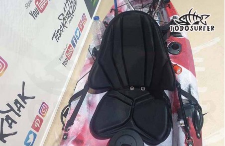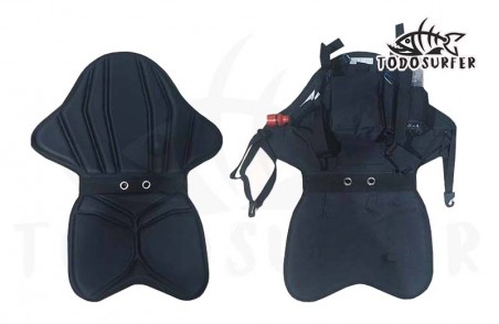 Asiento para paddle surf y kayak universal. La tabla de paddle surf debe tener preinstalación para poder colocarle los enganches que trae el asiento. Tiene base y respaldo alto acolchado de 3 cm. En su espalda encontramos un completo set portaequipajes para llevar pertrechos, cañas, botellas, accesorios y todo lo que puedas necesitar. Un asiento muy cómodo y versatil.