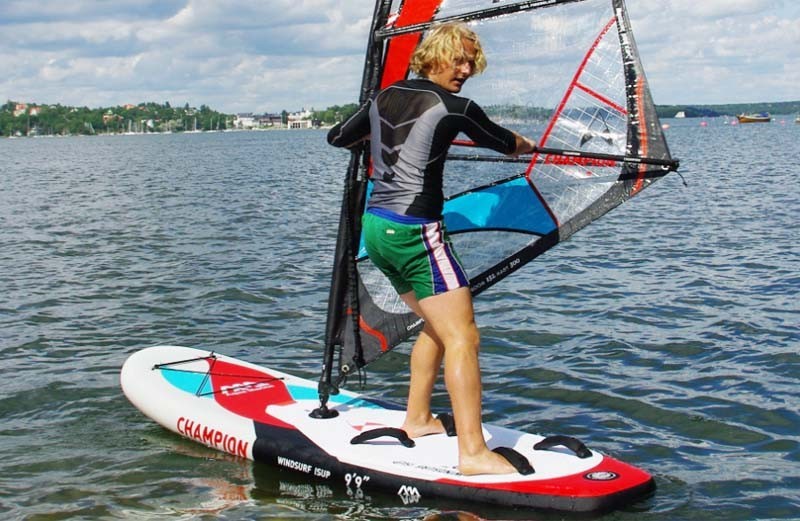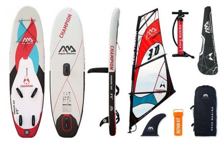 Tabla de Windsurf SUP Champion hinchable de Aquamarina, una opción muy interesante para los principiantes que desean iniciarse en Windsurf al mismo tiempo que desean tener su stand up paddle, ya que podremos darle ambos usos. Se una tabla con unas medidas excepcionales para maniobrar, mide 300x75x15 cm, pesa 16,7 kg y soporta hasta 120 kg. Equipo completo.